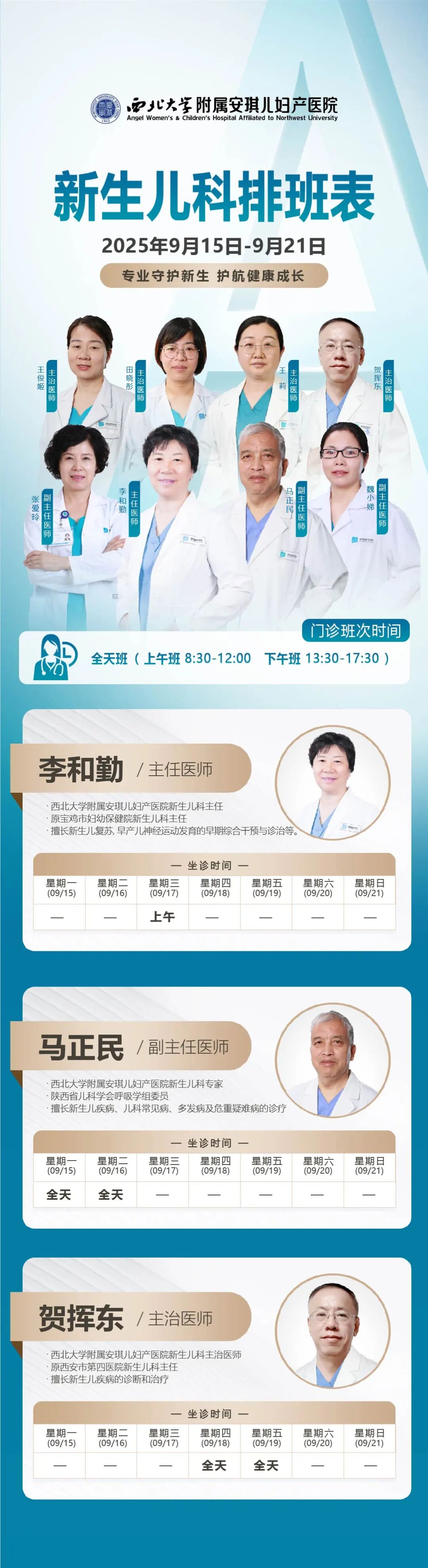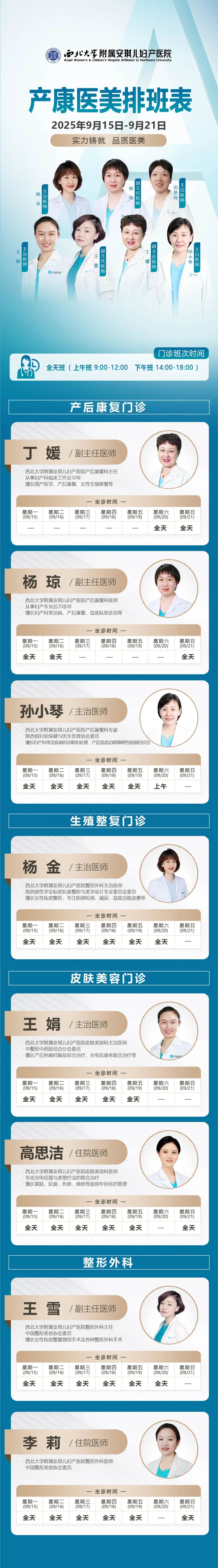 西安安琪儿妇产医院(9月15日至9月21日)专家坐诊时间表