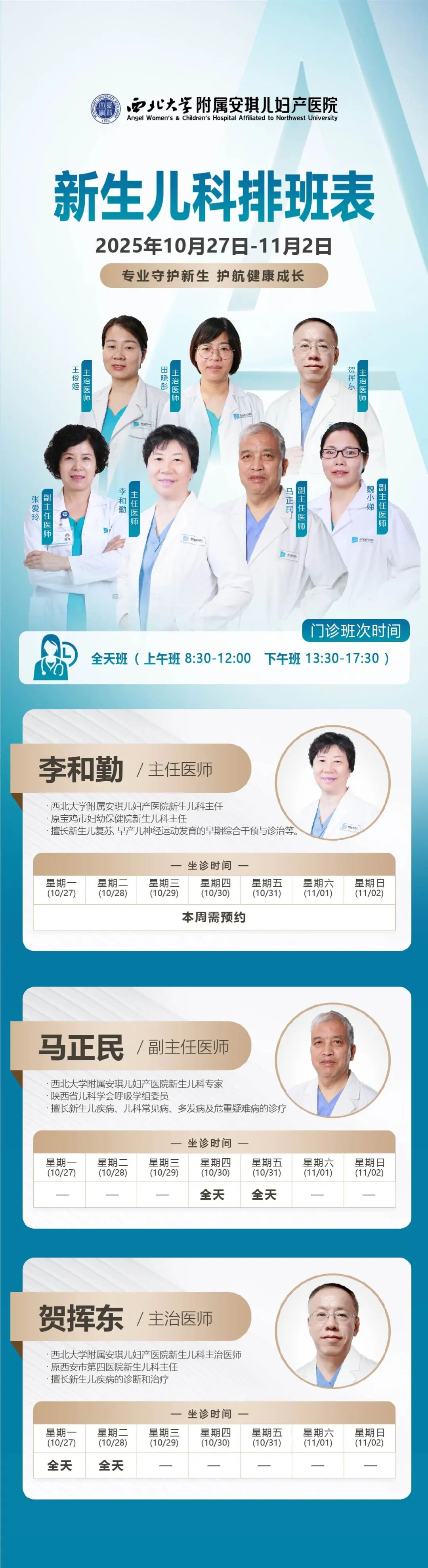 西安安琪儿妇产医院(10月27日至11月2日)专家坐诊时间表