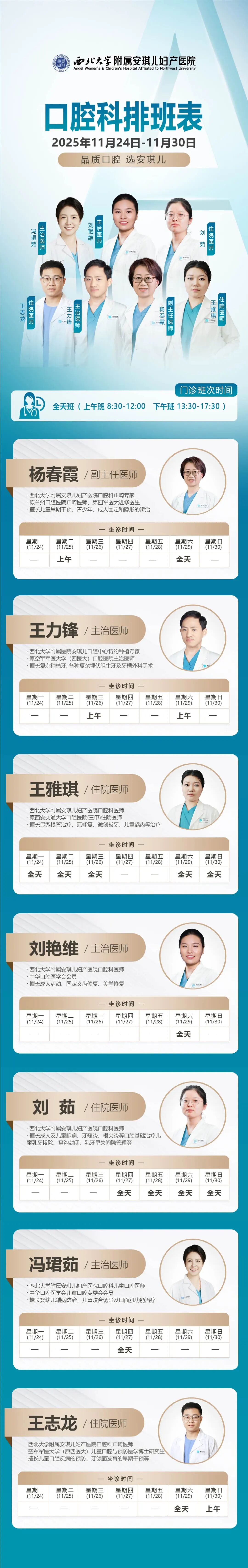 西安安琪儿妇产医院(11月24日至11月30日)专家坐诊时间表