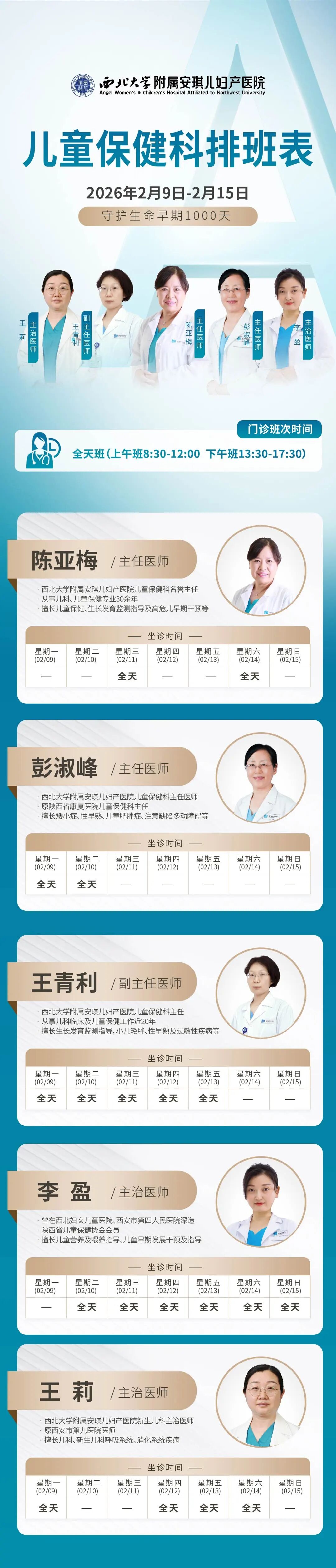 西安安琪儿妇产医院(2月9日至2月15日)专家坐诊时间表