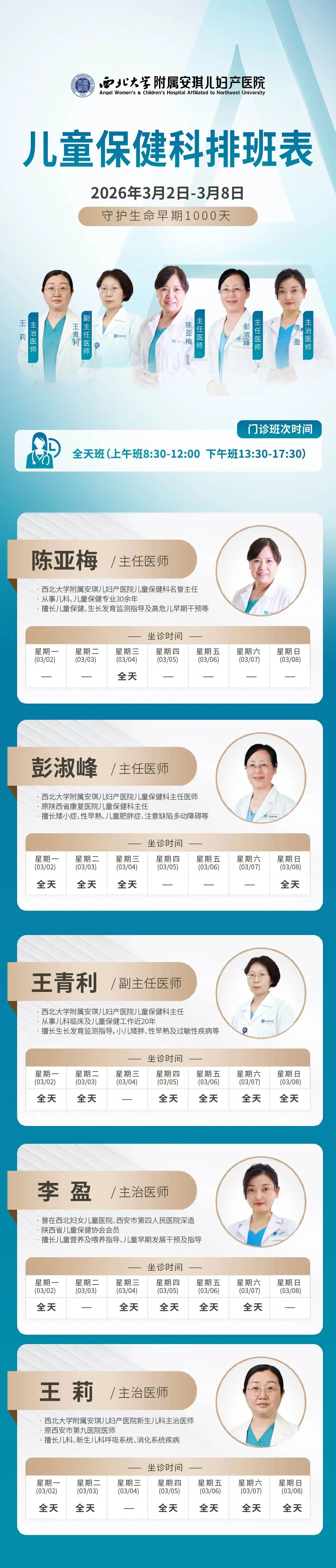 西安安琪儿妇产医院(3月2日至3月8日)专家坐诊时间表