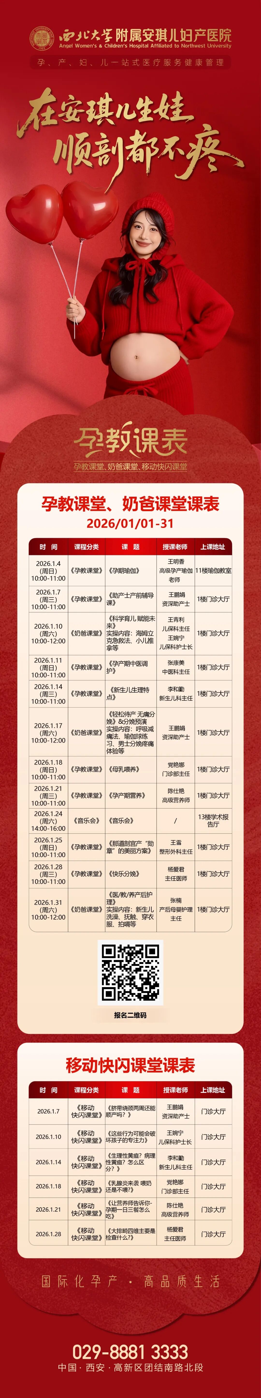 国际化孕产·高品质生活安琪儿2026年3月孕教课表