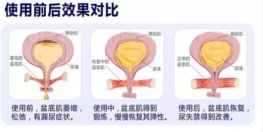 可刺激盆底肌肉作有节律的收缩和放松,使之得到被动锻炼,进而达到增加肌力的效果。