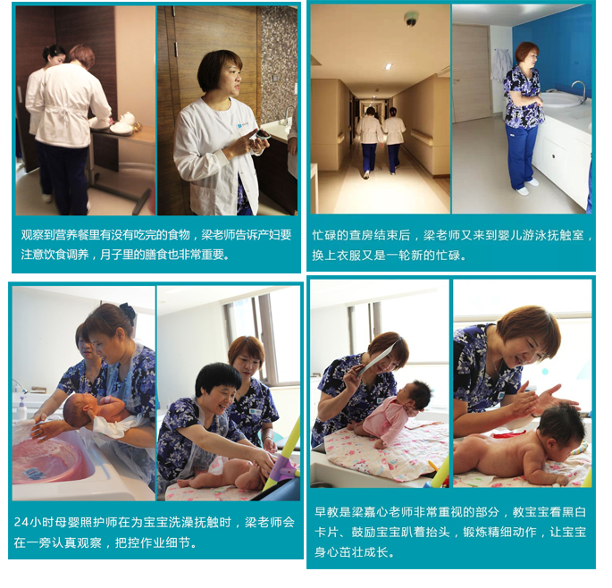 梁嘉心是同事们眼里的工作狂,更是孕产妇心目中的“Supernanny”。面对梁嘉心老师时,她虽面露和蔼微笑,但你仍然看得出那双眼睛后面的谨慎。这也难怪,她的和蔼给了新妈妈,微笑给了小宝贝,要给初生宝贝和新妈妈妥帖、完美的照料,需要一丝不苟。我们跟随在梁老师身后,步伐匆忙,她推开一间一间又一间的病房,询问宝宝的情况,嘱咐24小时母婴照护师需要注意的细节,为新妈妈缓解憋乳的痛苦,关注宝宝的生长发育状态。又忙着为母婴照护师考试,指点照护宝宝的准确动作...... 看着梁老师忙碌的身影,似乎看到她心中盛开如云的花朵,缀满了“信赖”和“大爱”。