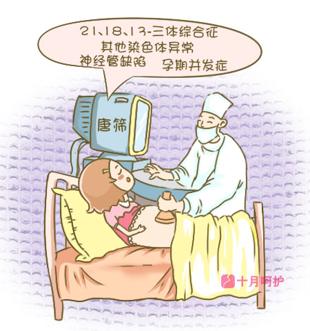 另外,B超检查中还有其他可疑染色体异常的指标,如NT增宽、肾盂分离、侧脑室增宽、肠管强回声、四肢长骨短、鼻骨短小等。这些都只是预测染色体异常的软指标,而不是诊断金标准。