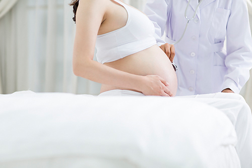 医师运用多普勒胎心仪来听宝宝的心跳。