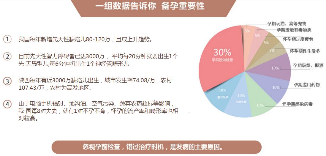 相对于普通的体检,安琪儿备孕套式计划增加了男女双方病毒遗传检查包括弓形虫、风疹病毒、单纯疱疹病毒、巨细胞病毒、性病等病毒遗传检查,将神经管畸形儿的出生概率降低。