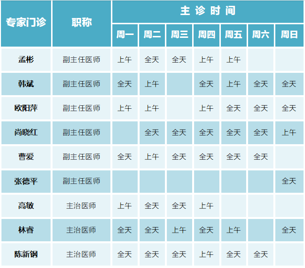 门诊排班|(7月10日-7月16日)门诊专家坐诊时间表