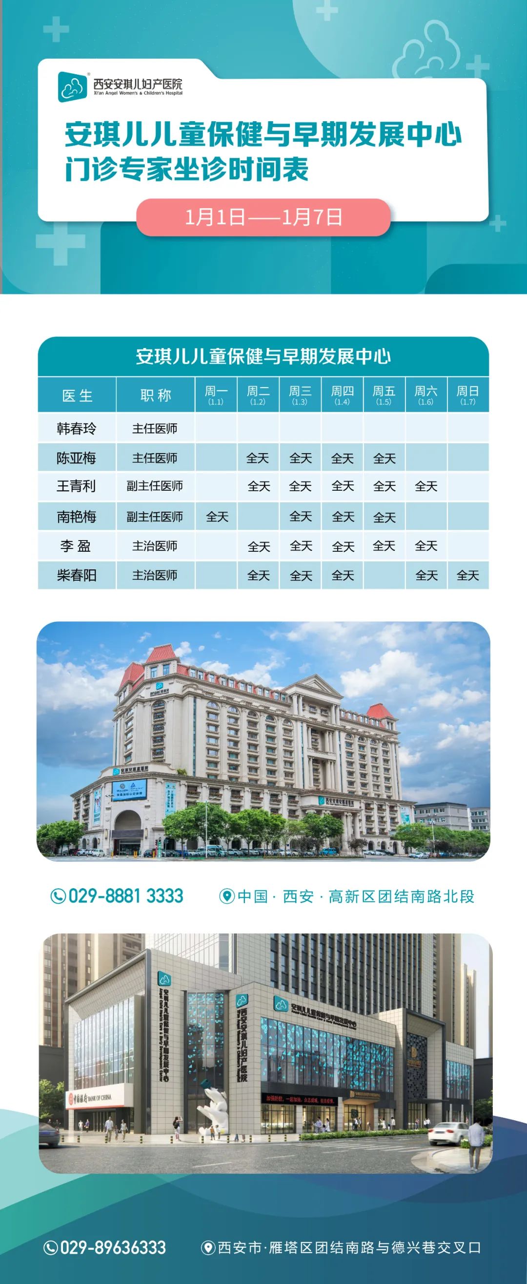 门诊专家(1月1日-1月7日)排班表