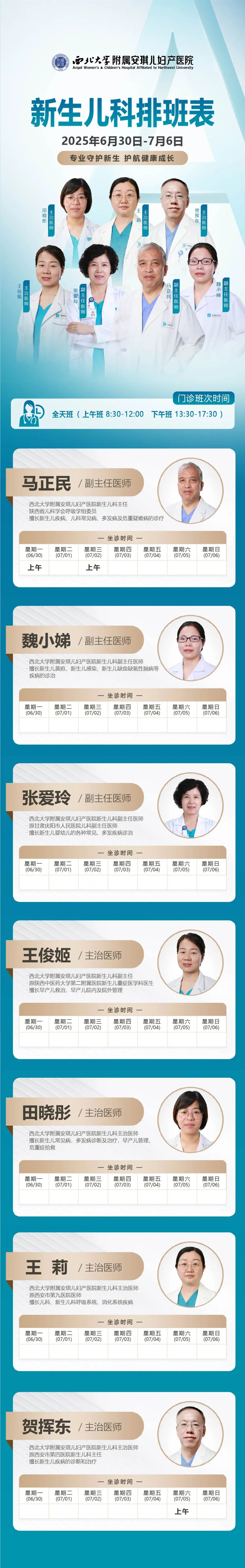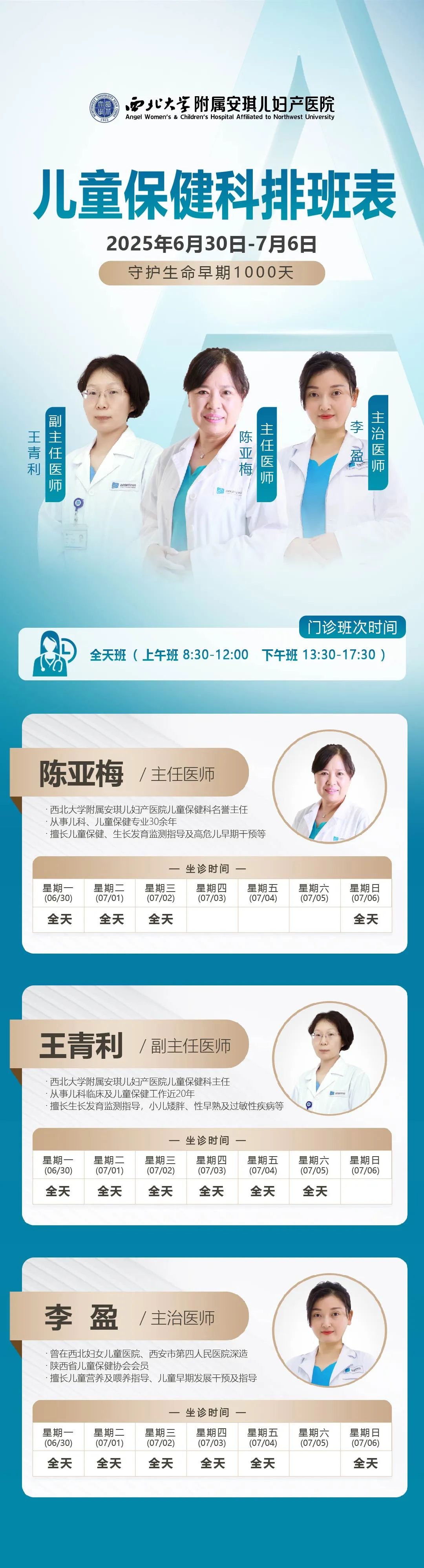 西安安琪儿妇产医院(11月03日至11月09日)专家坐诊时间表