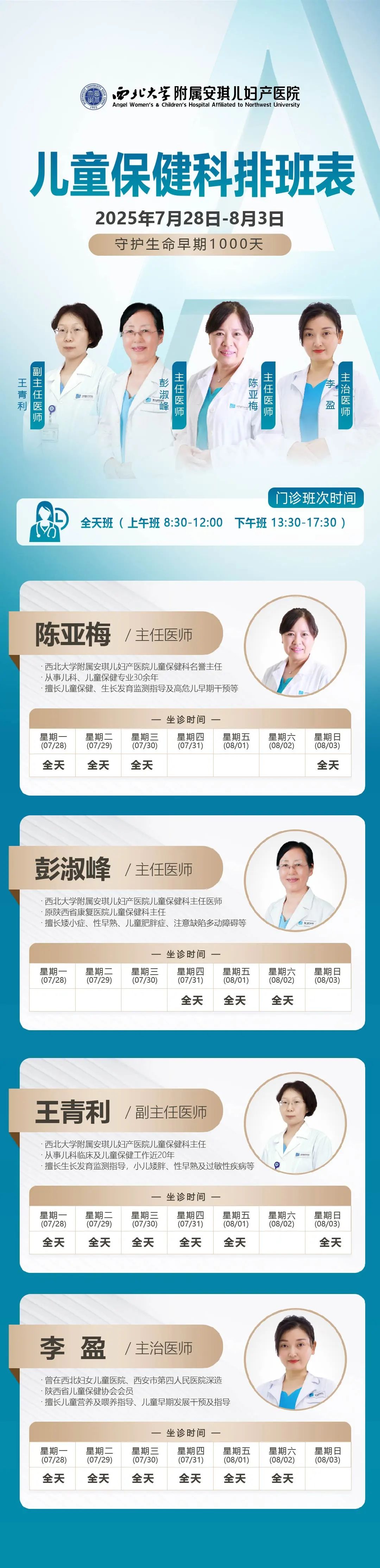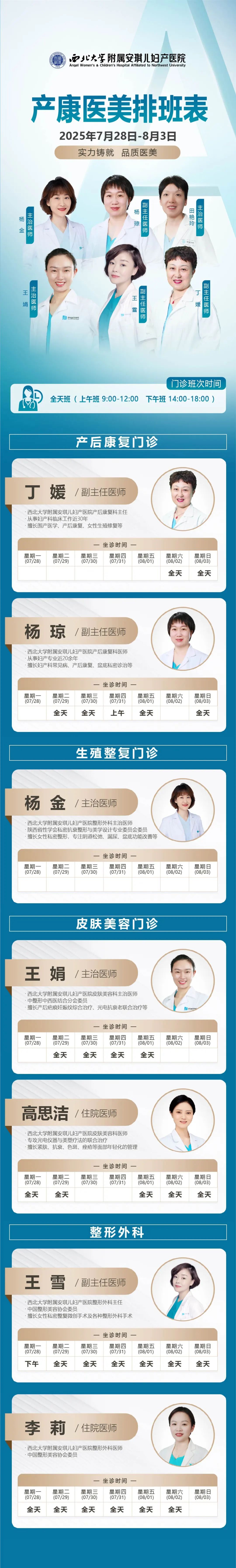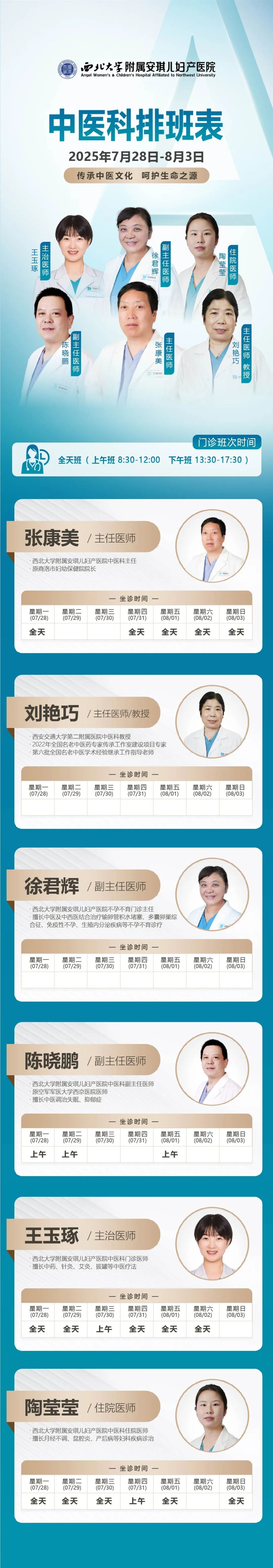 请收好!门诊专家(7月28日-8月3日)排班表,家门口就能看名医!
