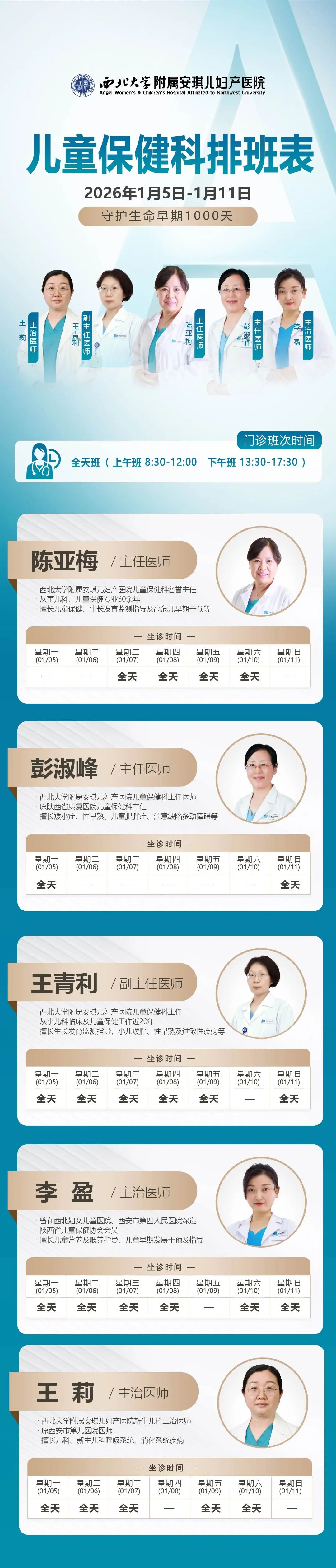 西安安琪儿妇产医院(1月26日至2月1日)专家坐诊时间表