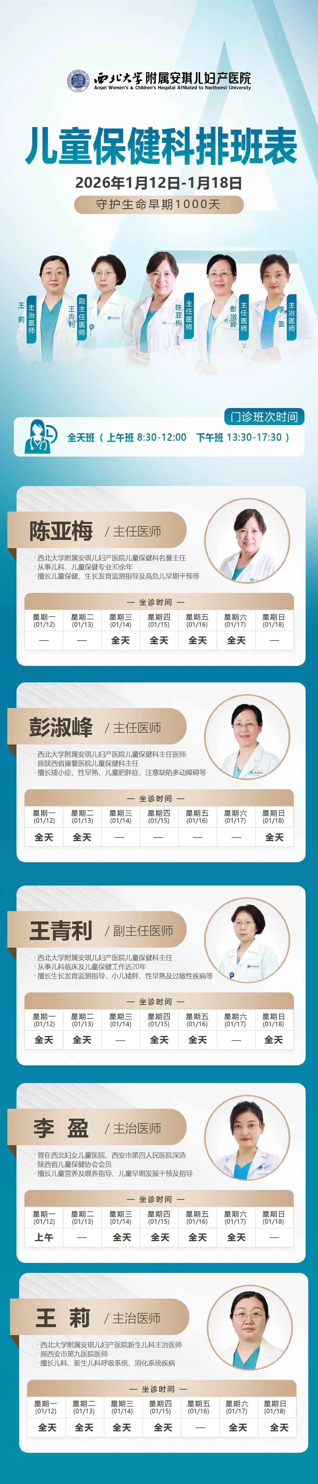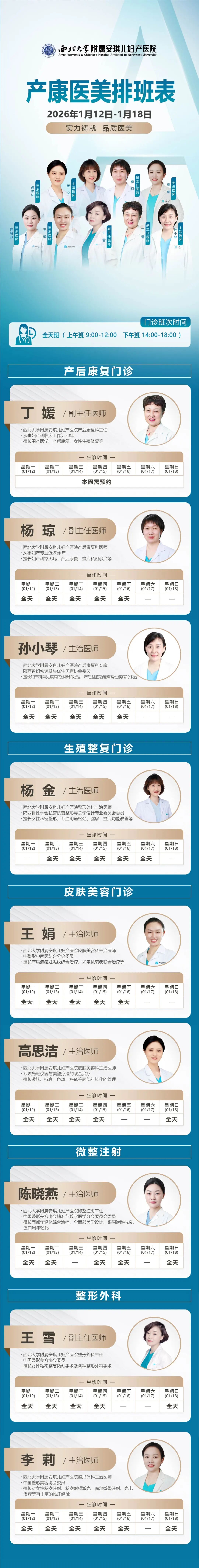 西安安琪儿妇产医院(1月12日至1月18日)专家坐诊时间表
